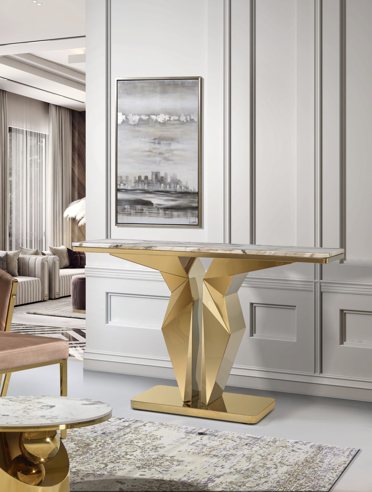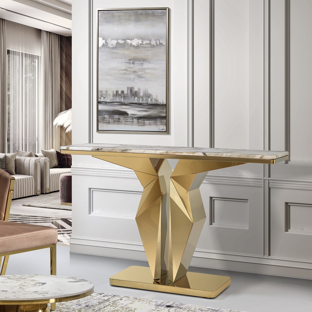 FINISHING MIRROR GOLD WHITE, BROWN & GOLD MARBLE